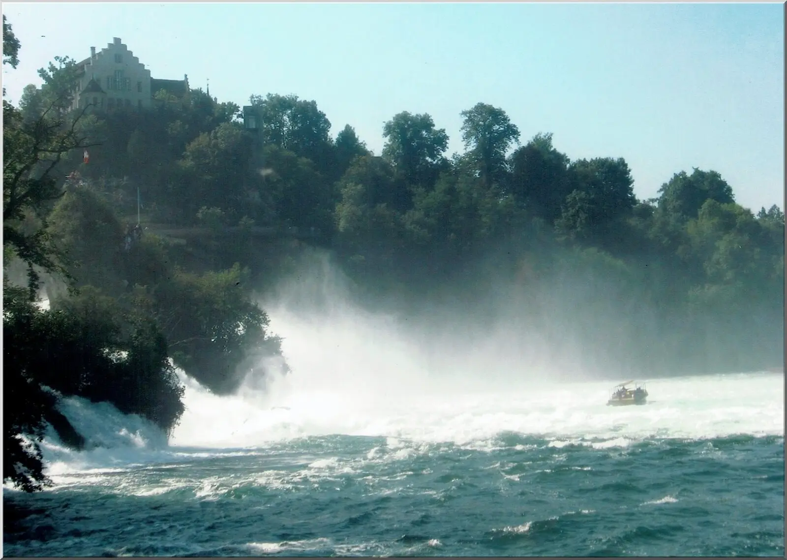 Landschaft mit Wasserfall umgeben von Bäumen und kleinen Felsen. Diese DIN A6 Motiv Postkarte drucken wir exklusiv auf einem350gr Postkartenkarton. Die Rückseite ist mit jedem Stiftgut zu beschreiben.