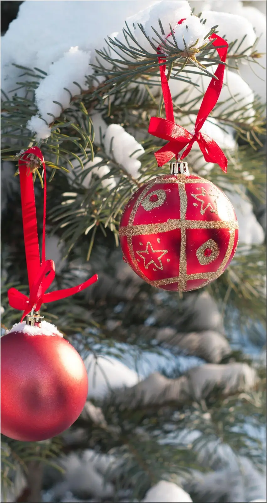 Rote Weihnachtsdeko im Schnee